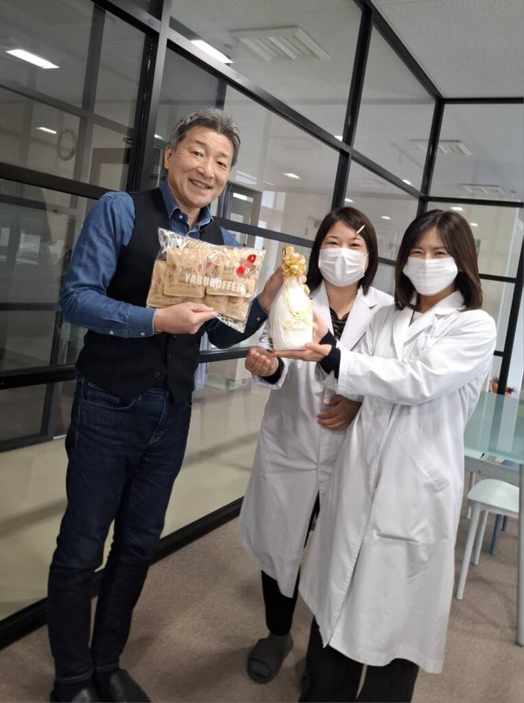 朝礼時に、社員一同からのプレゼントを贈呈しました。